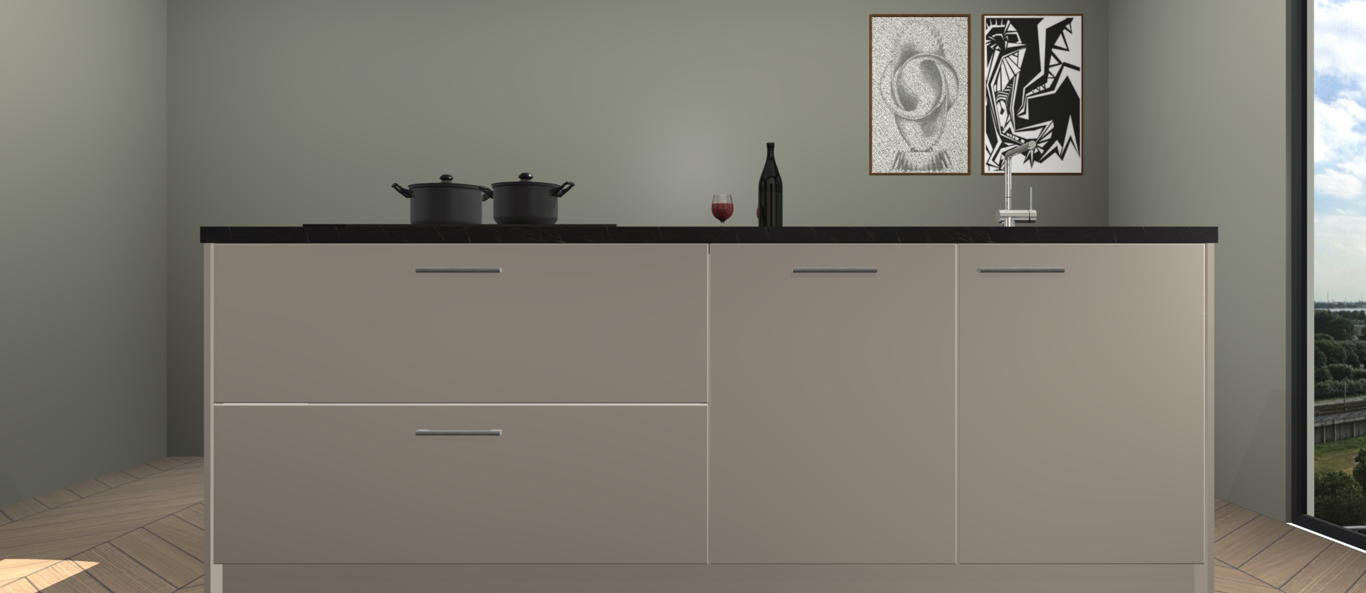 In deze box zijn alle kleuren verzameld van de deuren en werkbladen. Vraag de gratis kleurenbox aan en kijk thuis rustig verder!