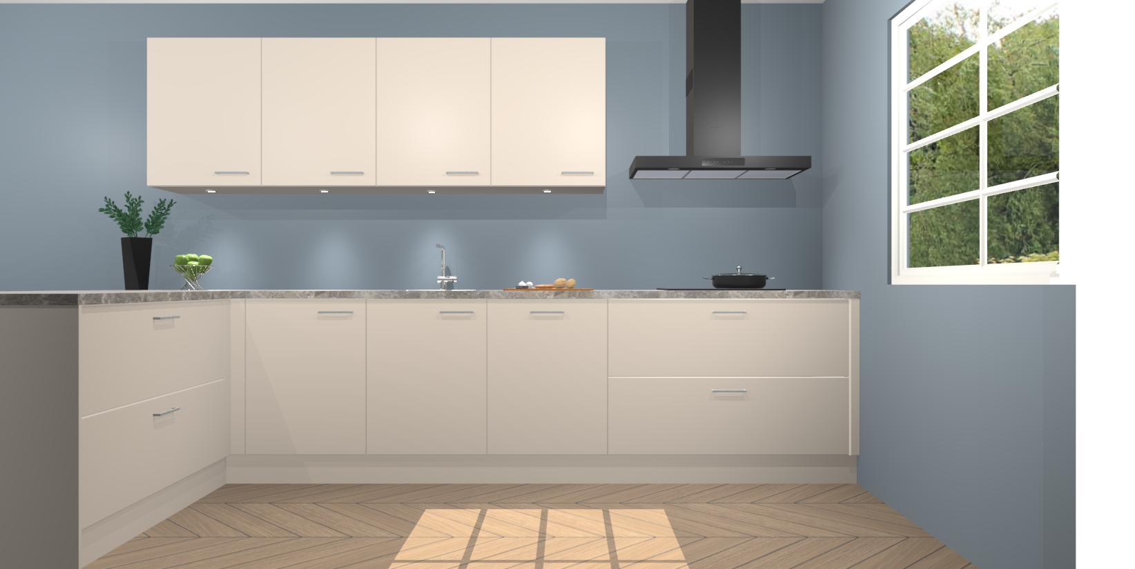Inclusief plinten, stelpoten en werkblad