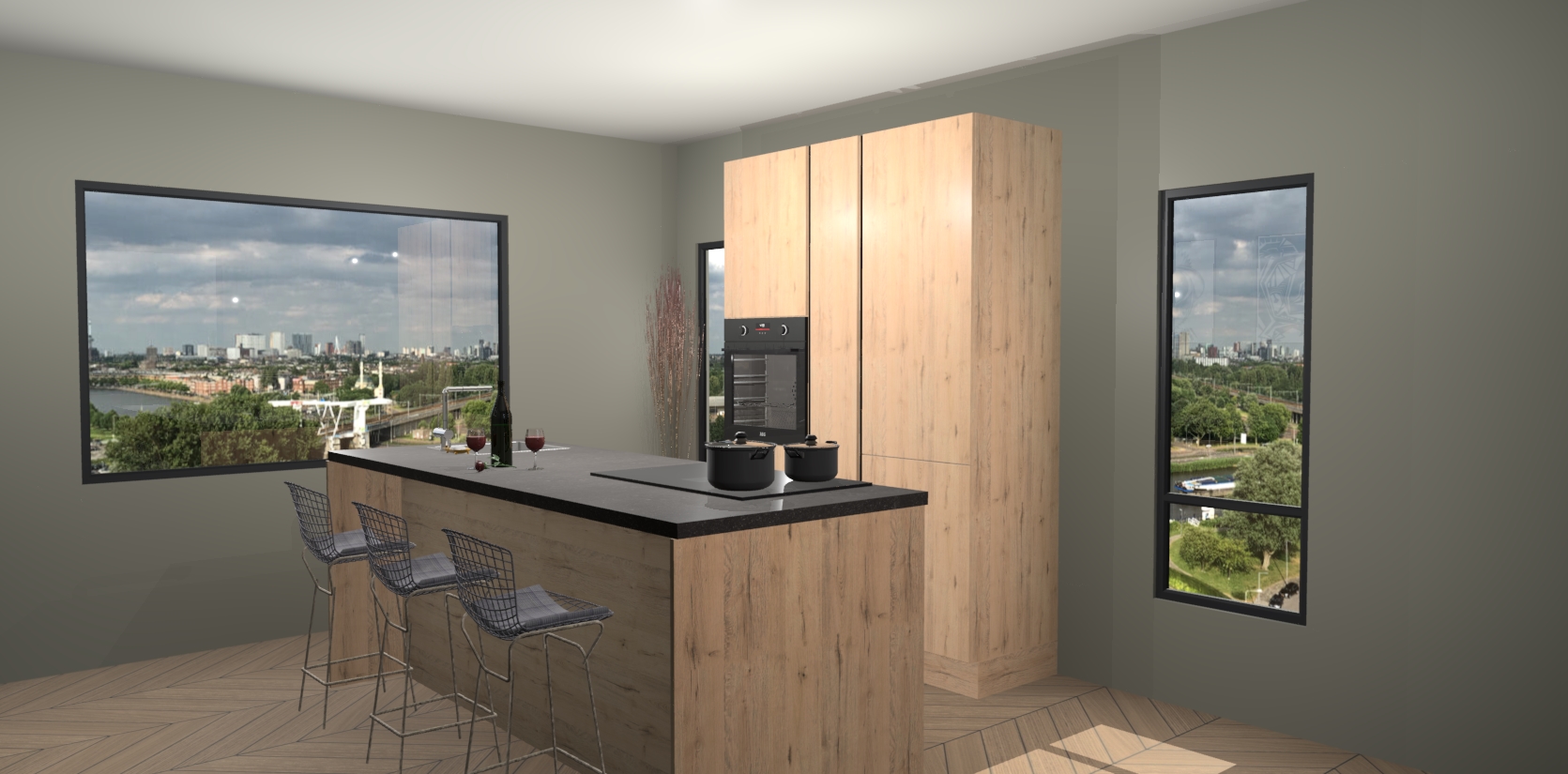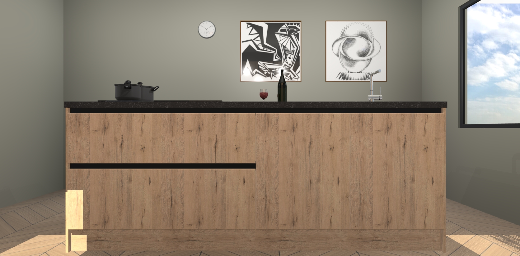 Bereid u voor om verliefd te worden op de madera natuur greeploze keuken Jeddah ! Deze keuken straalt warmte uit en creëert meteen een huiselijke sfeer in uw woning. Het prachtige kookeiland heeft een modern design met een houtlook die uw interieur extra karakter zal geven. Dit greeploze model biedt veel opbergruimte voor al uw behoeften. Maakt u zich geen zorgen, we hebben ook aan de apparatuur gedacht!