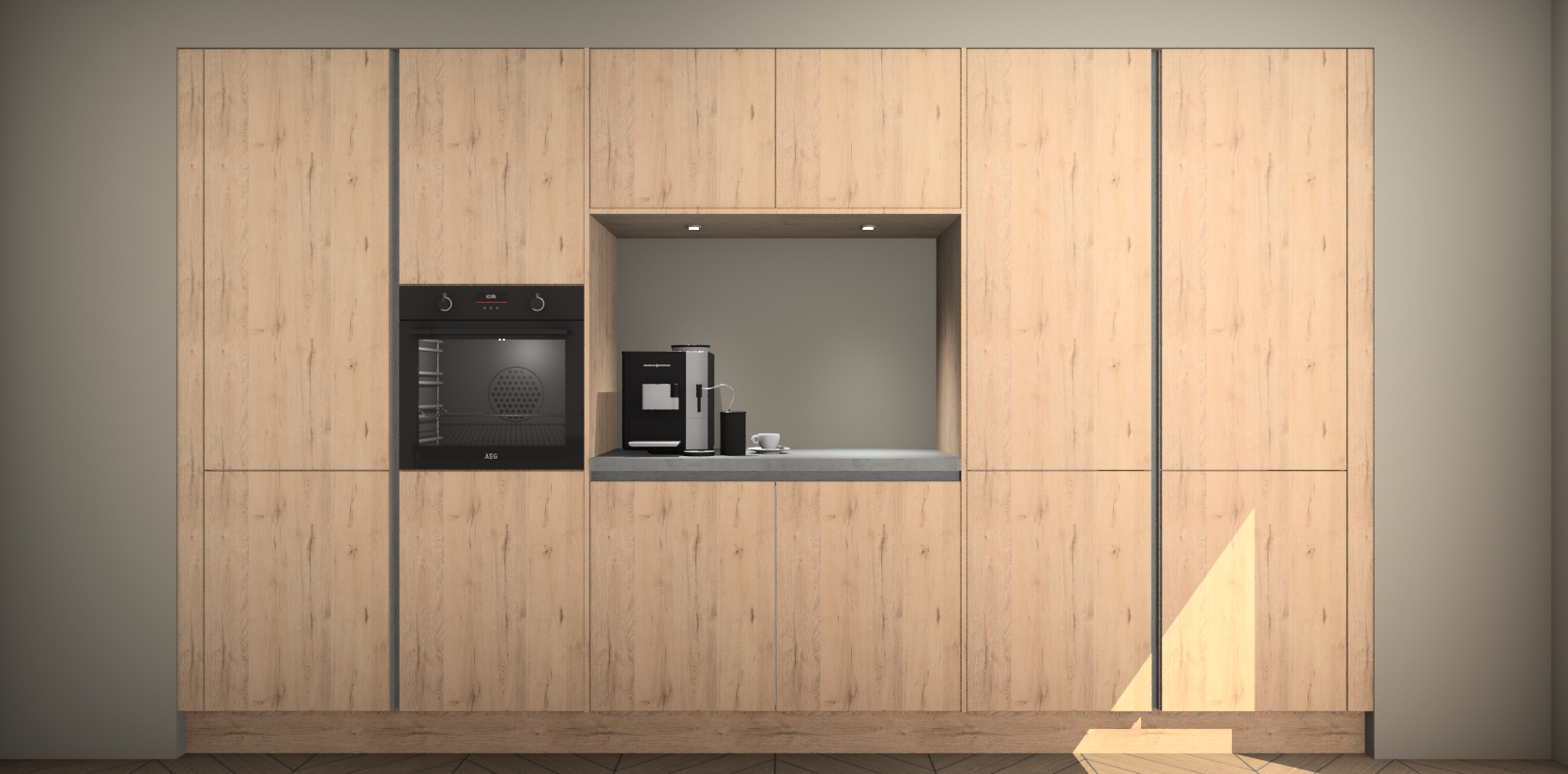 De Madera Natuur greeploze keuken Lodz wordt geleverd met een set van 5 ingebouwde apparaten: Een oven, inductiekookplaat, afzuigkap, vaatwasser en koelkast. Deze kunnen gemakkelijk worden opgewaardeerd naar AEG. Met de gegarandeerde lage prijs en de snelle levering van 7 weken kan u er op rekenen dat de Madera Natuur greeploze keuken Lodz zo snel mogelijk uw huis bereikt!