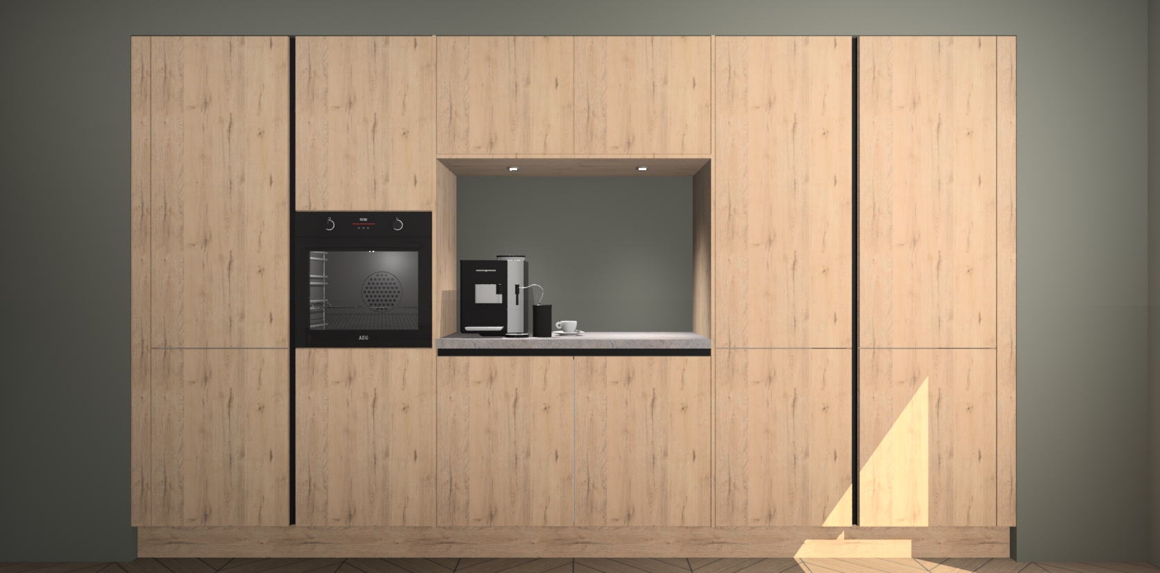 De Madera Natuur greeploze keuken Lodz wordt geleverd met een set van 5 ingebouwde apparaten: Een oven, inductiekookplaat, afzuigkap, vaatwasser en koelkast. Deze kunnen gemakkelijk worden opgewaardeerd naar AEG. Met de gegarandeerde lage prijs en de snelle levering van 7 weken kan u er op rekenen dat de Madera Natuur greeploze  keuken Lodz zo snel mogelijk uw huis bereikt!