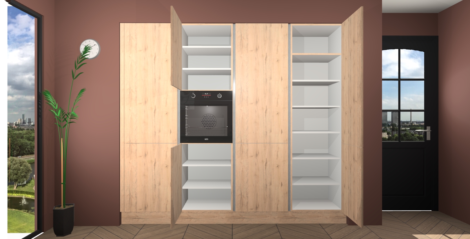 Dankzij de vele opbergruimte wordt praktisch elke centimeter van uw keuken optimaal benut, wat de ruimte een opgeruimde en sfeervolle uitstraling geeft. Bovendien zijn we er trots op dat we een snelle levering van 7 weken en een vaste lage prijs kunnen bieden, zodat u deze prachtige keuken in een mum van tijd in huis hebt!