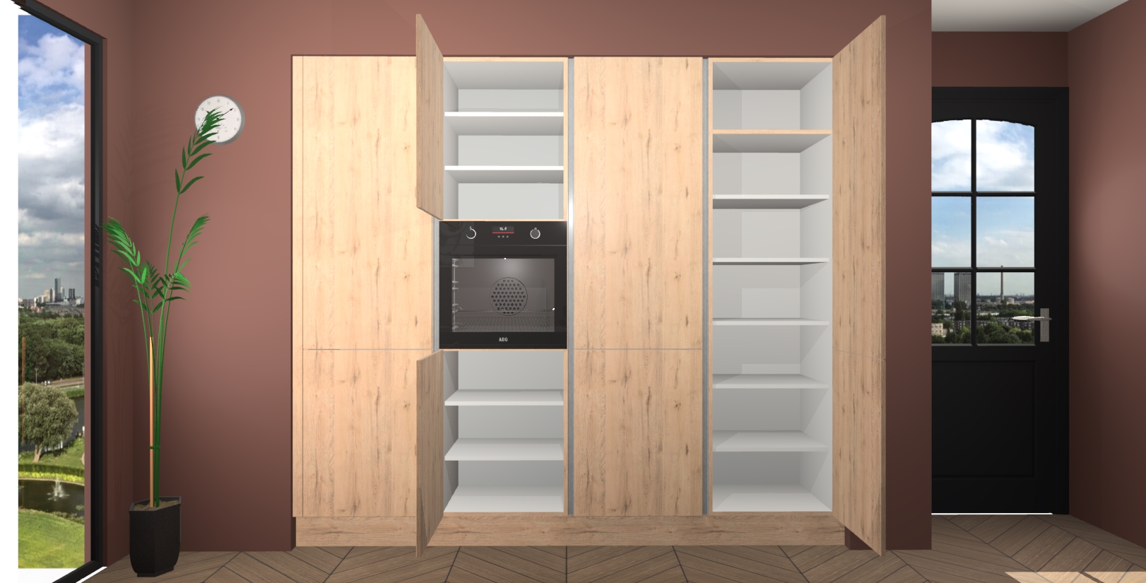 Dankzij de vele opbergruimte wordt praktisch elke centimeter van uw keuken optimaal benut, wat de ruimte een opgeruimde en sfeervolle uitstraling geeft. Bovendien zijn we er trots op dat we een snelle levering van 7 weken en een vaste lage prijs kunnen bieden, zodat u deze prachtige keuken in een mum van tijd in huis hebt!