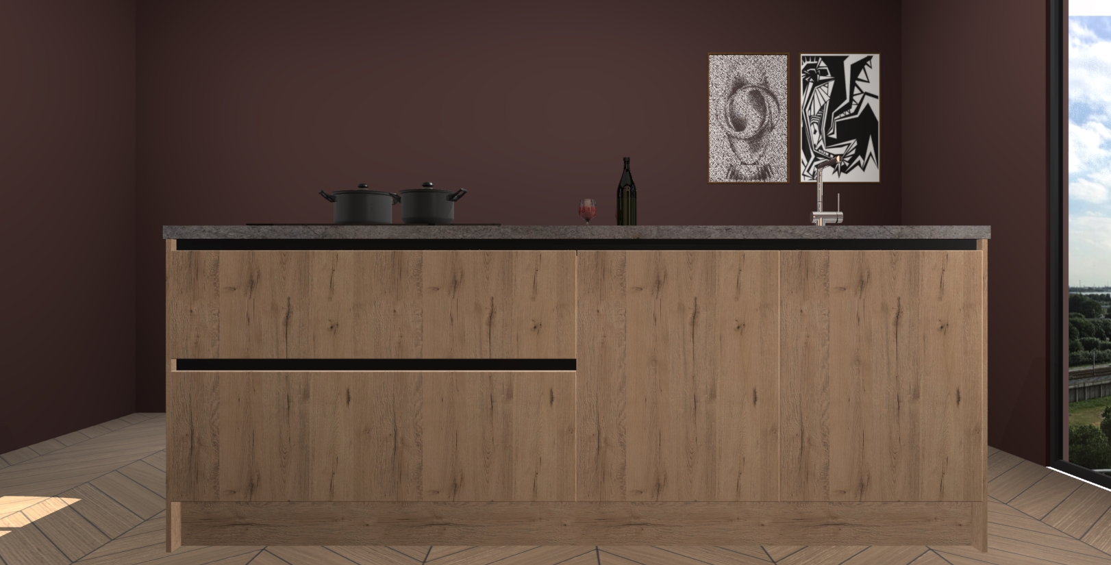 Breng luxe in uw keuken met de madera natuur greeploze Rusiec Keuken! Dit prachtige kookeiland straalt elegantie uit en laat elke ruimte er modern en verfijnd uitzien. De strakke madera natuur kleur geeft uw keuken een gevoel van sfeer en verfijning dat u bij andere stijlen niet krijgt.