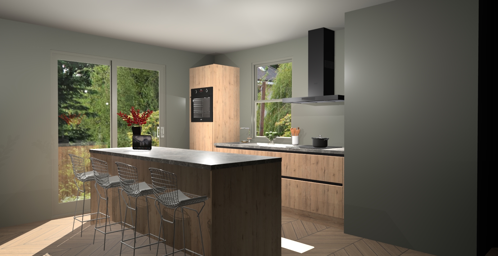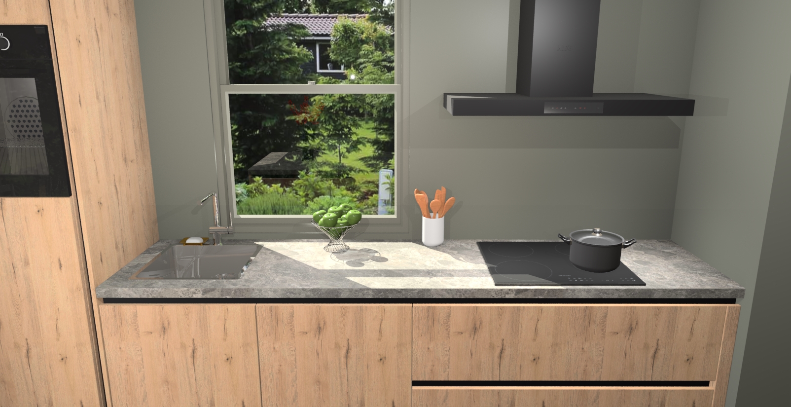 Een stijlvolle en praktische keuken als deze mag gezien worden. Dankzij de prachtige Madera Natuur afwerking wordt de keuken gemakkelijk het middelpunt van uw huis - hij ziet er geweldig uit onder allerlei lichtomstandigheden, van dag tot nacht!