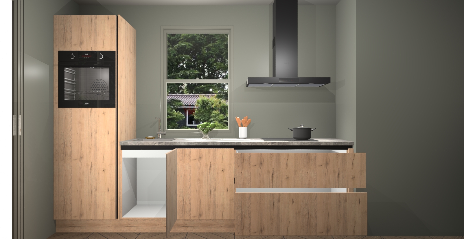 Dankzij de greeploze afwerking past de Madera Natuur keuken Toulouse naadloos in elk huis of appartement. De soft-close deuren geven je extra gemoedsrust, want ze sluiten vanzelf en slaan nooit dicht! En alsof dat nog niet genoeg is, worden deze kasten volledig gemonteerd geleverd, dus maak je geen zorgen over eventuele installatieproblemen.