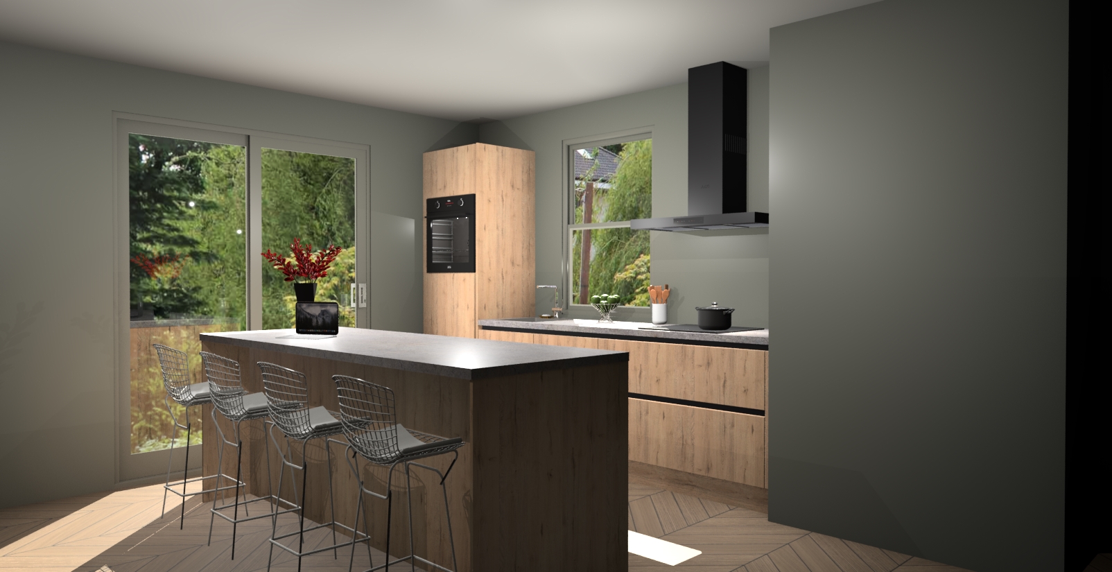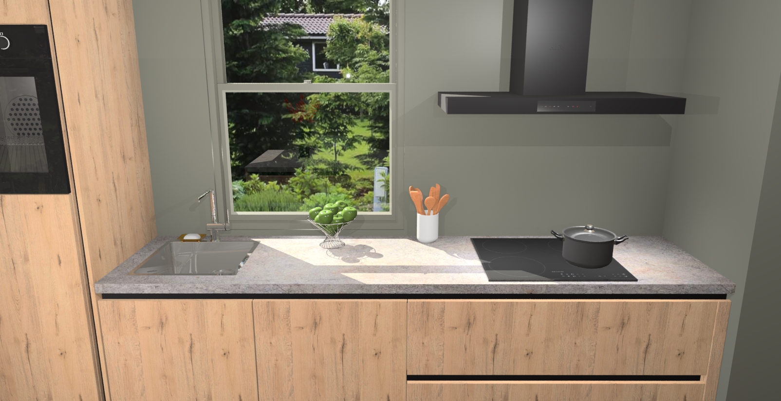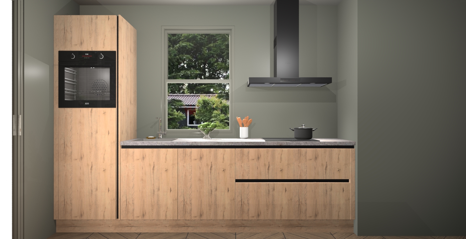 Een stijlvolle en praktische keuken als deze mag gezien worden. Dankzij de prachtige Madera Natuur afwerking wordt de keuken gemakkelijk het middelpunt van uw huis - hij ziet er geweldig uit onder allerlei lichtomstandigheden, van dag tot nacht!