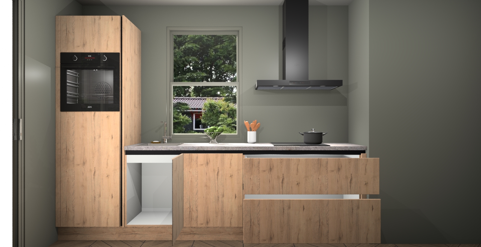 Dankzij de greeploze afwerking past de Madera Natuur keuken Toulouse naadloos in elk huis of appartement. De soft-close deuren geven je extra gemoedsrust, want ze sluiten vanzelf en slaan nooit dicht! En alsof dat nog niet genoeg is, worden deze kasten volledig gemonteerd geleverd, dus maak je geen zorgen over eventuele installatieproblemen.