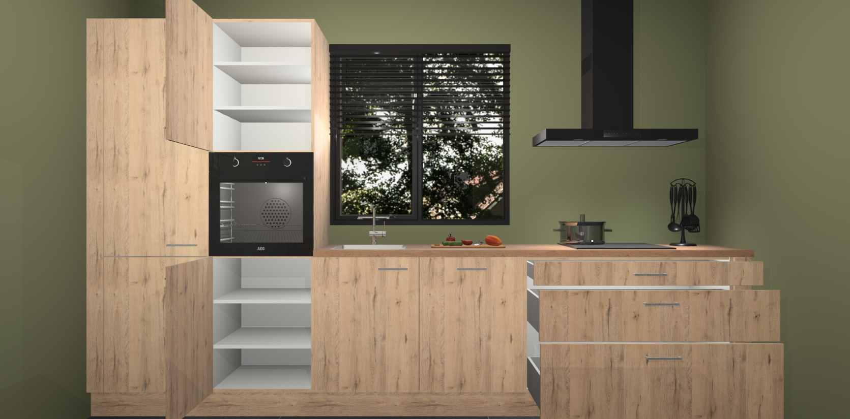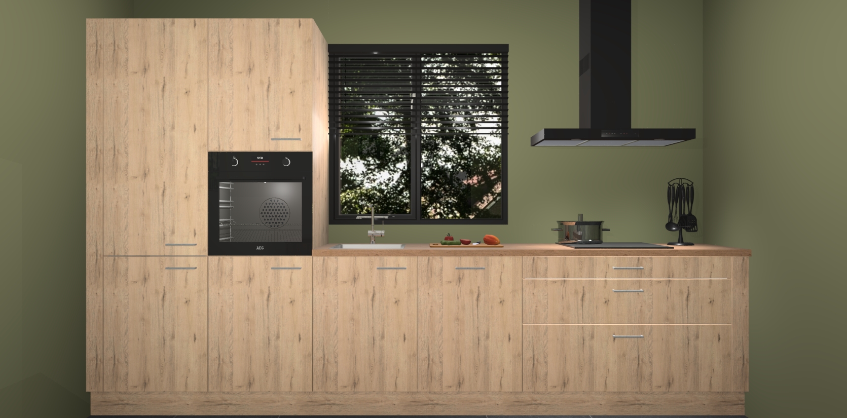 Maak kennis met de madera natuur keuken Bonaire: de perfecte balans tussen tijdloos en modern. Met voldoende opbergruimte zal deze keuken de afgunst van uw vrienden en familie zijn, terwijl uw leven moeiteloos georganiseerd en rommelvrij blijft.