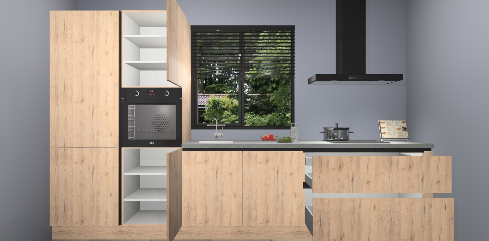Maak kennis met de madera natuur keuken Bonaire: de perfecte balans tussen tijdloos en modern. Met voldoende opbergruimte zal deze keuken de afgunst van uw vrienden en familie zijn, terwijl uw leven moeiteloos georganiseerd en rommelvrij blijft.