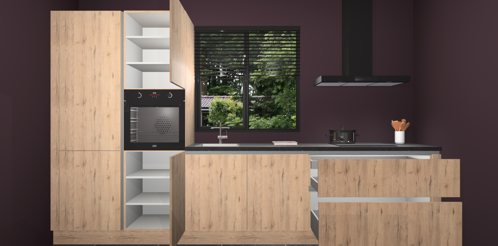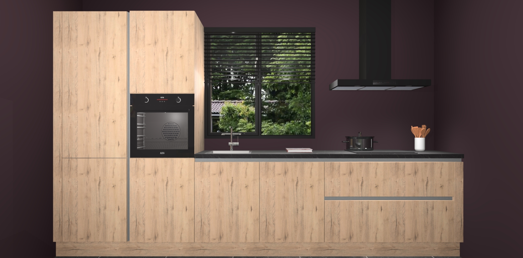 Maak kennis met de madera natuur keuken Bonaire: de perfecte balans tussen tijdloos en modern. Met voldoende opbergruimte zal deze keuken de afgunst van uw vrienden en familie zijn, terwijl uw leven moeiteloos georganiseerd en rommelvrij blijft.
