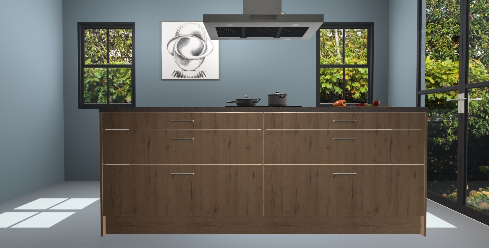 De rijke donkergrijze kleur voegt een vleugje klasse toe, terwijl de softclose deuren en ruime opbergruimte het nog handiger maken. Van het bereiden van maaltijden tot het gezellig samenzijn met familie en vrienden, deze keuken geeft elke gelegenheid een geraffineerde uitstraling. Het grote kookeiland is vooral ideaal voor wie meer werkbladruimte en extra opbergruimte wil.