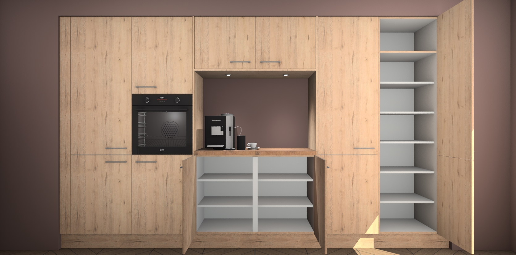 De Madera Natuur keuken Lodz wordt geleverd met een set van 5 ingebouwde apparaten: Een oven, inductiekookplaat, afzuigkap, vaatwasser en koelkast. Deze kunnen gemakkelijk worden opgewaardeerd naar AEG. Met de gegarandeerde lage prijs en de snelle levering van 7 weken kan u er op rekenen dat de Madera Natuur keuken Lodz zo snel mogelijk uw huis bereikt!