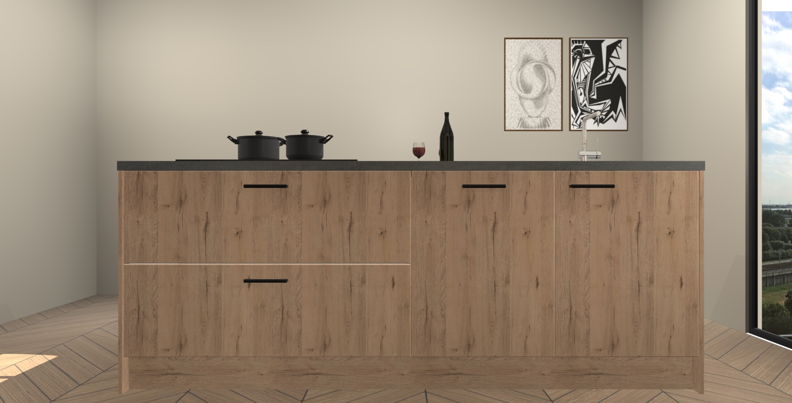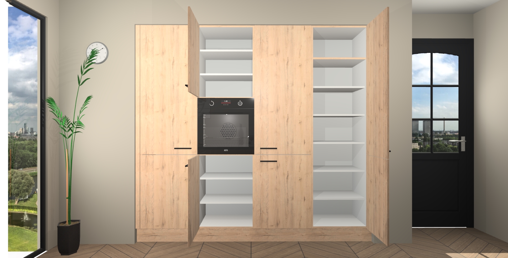 Dankzij de vele opbergruimte wordt praktisch elke centimeter van uw keuken optimaal benut, wat de ruimte een opgeruimde en sfeervolle uitstraling geeft. Bovendien zijn we er trots op dat we een snelle levering van 7 weken en een vaste lage prijs kunnen bieden, zodat u deze prachtige keuken in een mum van tijd in huis hebt!