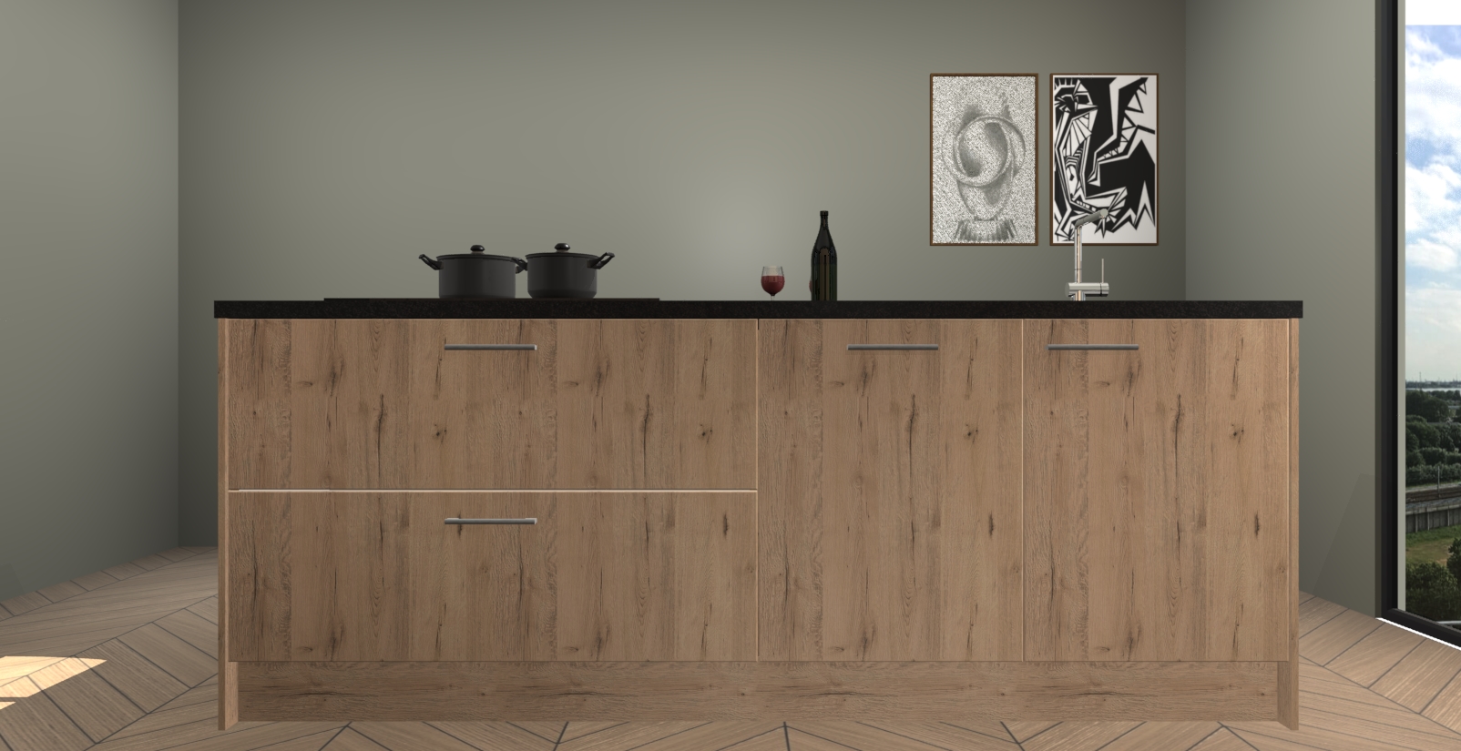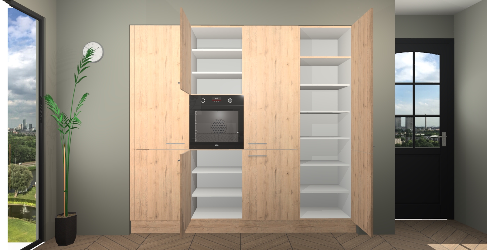 Dankzij de vele opbergruimte wordt praktisch elke centimeter van uw keuken optimaal benut, wat de ruimte een opgeruimde en sfeervolle uitstraling geeft. Bovendien zijn we er trots op dat we een snelle levering van 7 weken en een vaste lage prijs kunnen bieden, zodat u deze prachtige keuken in een mum van tijd in huis hebt!