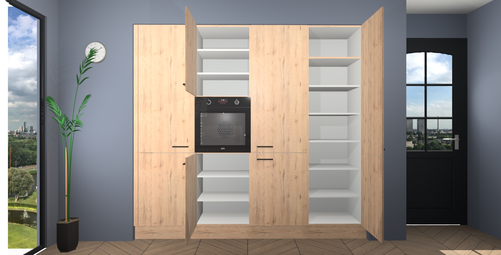 Dankzij de vele opbergruimte wordt praktisch elke centimeter van uw keuken optimaal benut, wat de ruimte een opgeruimde en sfeervolle uitstraling geeft. Bovendien zijn we er trots op dat we een snelle levering van 7 weken en een vaste lage prijs kunnen bieden, zodat u deze prachtige keuken in een mum van tijd in huis hebt!