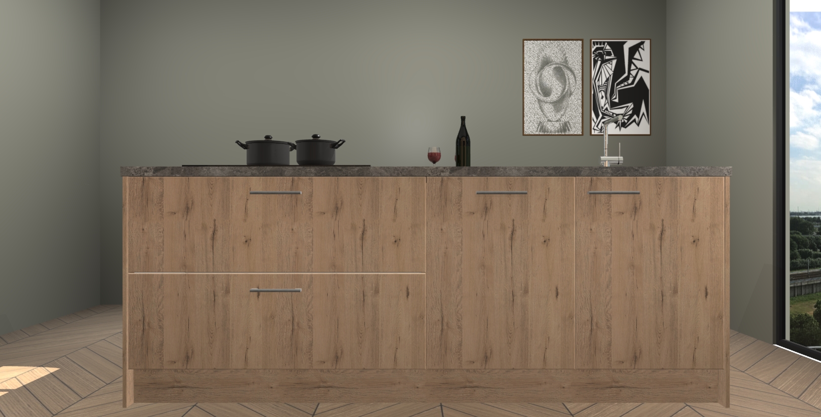 Breng luxe in uw keuken met de madera natuur Rusiec Keuken! Dit prachtige kookeiland straalt elegantie uit en laat elke ruimte er modern en verfijnd uitzien. De strakke madera natuur kleur geeft uw keuken een gevoel van sfeer en verfijning dat u bij andere stijlen niet krijgt.
