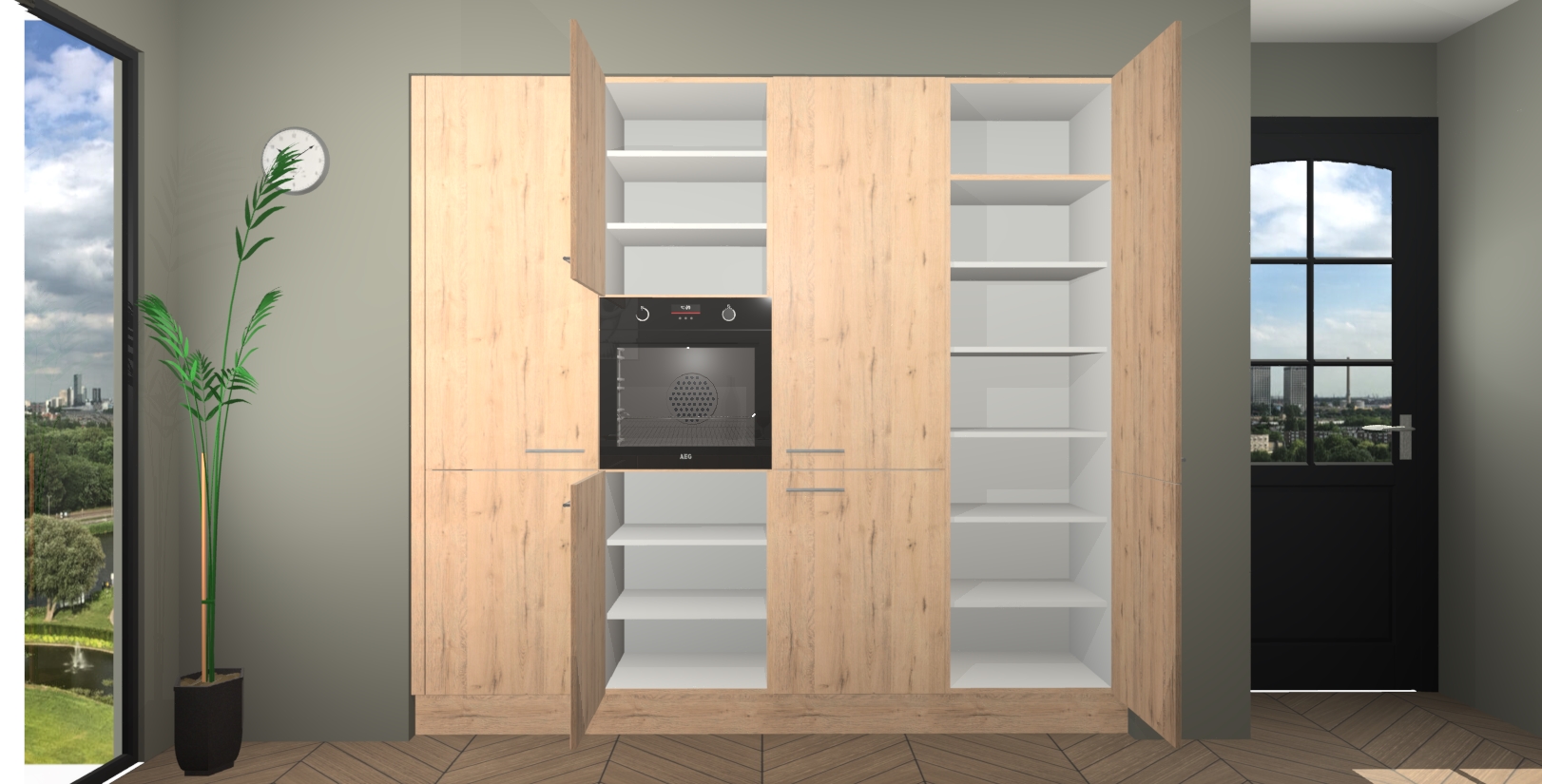 Dankzij de vele opbergruimte wordt praktisch elke centimeter van uw keuken optimaal benut, wat de ruimte een opgeruimde en sfeervolle uitstraling geeft. Bovendien zijn we er trots op dat we een snelle levering van 7 weken en een vaste lage prijs kunnen bieden, zodat u deze prachtige keuken in een mum van tijd in huis hebt!