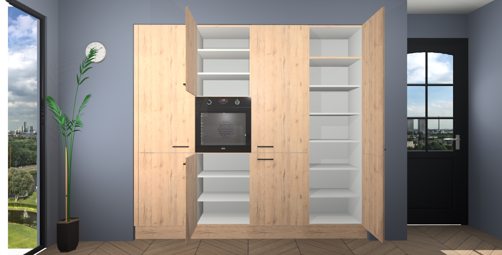 Dankzij de vele opbergruimte wordt praktisch elke centimeter van uw keuken optimaal benut, wat de ruimte een opgeruimde en sfeervolle uitstraling geeft. Bovendien zijn we er trots op dat we een snelle levering van 7 weken en een vaste lage prijs kunnen bieden, zodat u deze prachtige keuken in een mum van tijd in huis hebt!