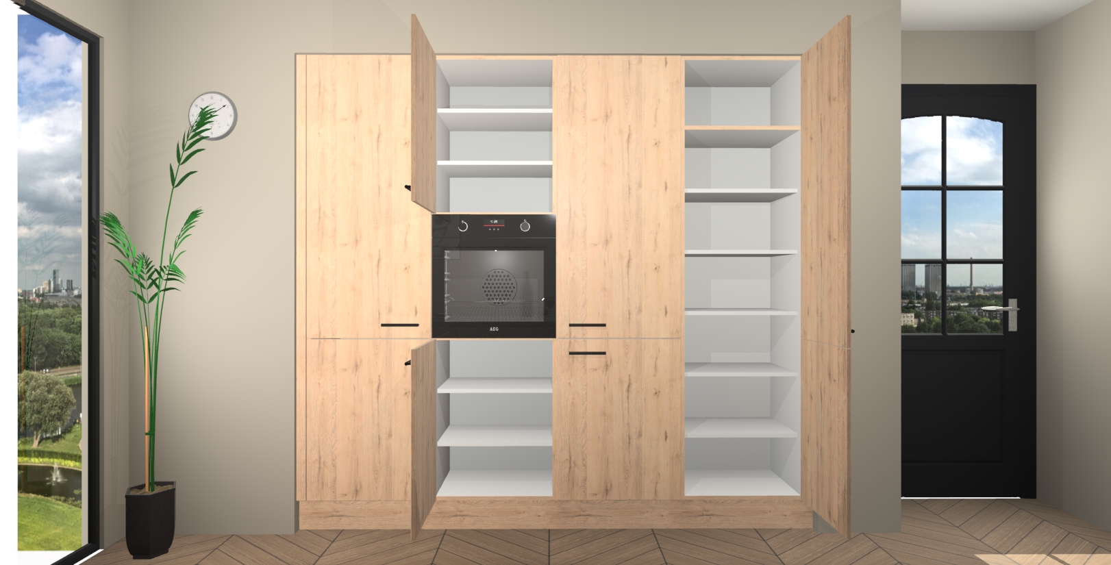 Dankzij de vele opbergruimte wordt praktisch elke centimeter van uw keuken optimaal benut, wat de ruimte een opgeruimde en sfeervolle uitstraling geeft. Bovendien zijn we er trots op dat we een snelle levering van 7 weken en een vaste lage prijs kunnen bieden, zodat u deze prachtige keuken in een mum van tijd in huis hebt!