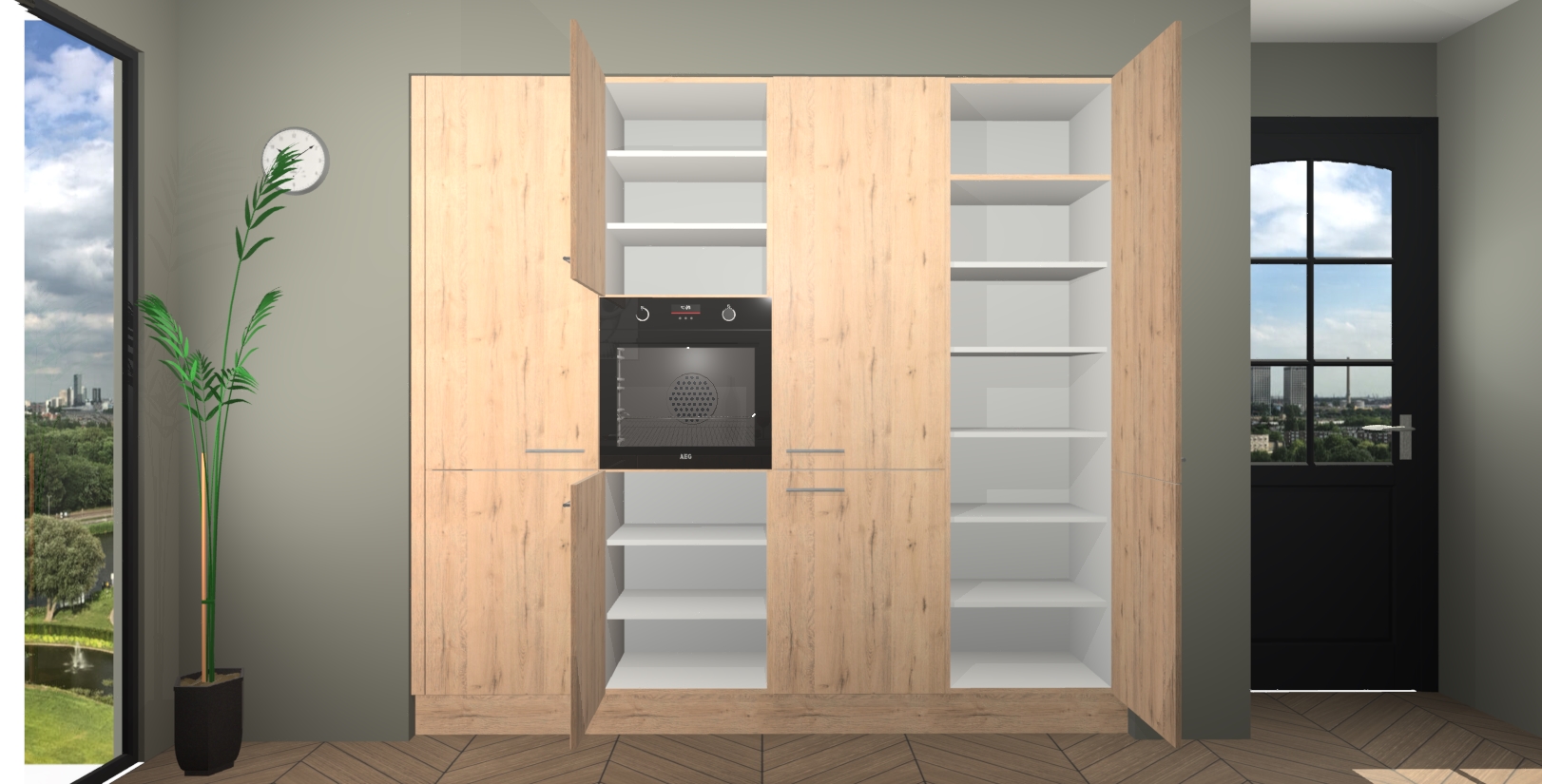 Dankzij de vele opbergruimte wordt praktisch elke centimeter van uw keuken optimaal benut, wat de ruimte een opgeruimde en sfeervolle uitstraling geeft. Bovendien zijn we er trots op dat we een snelle levering van 7 weken en een vaste lage prijs kunnen bieden, zodat u deze prachtige keuken in een mum van tijd in huis hebt!