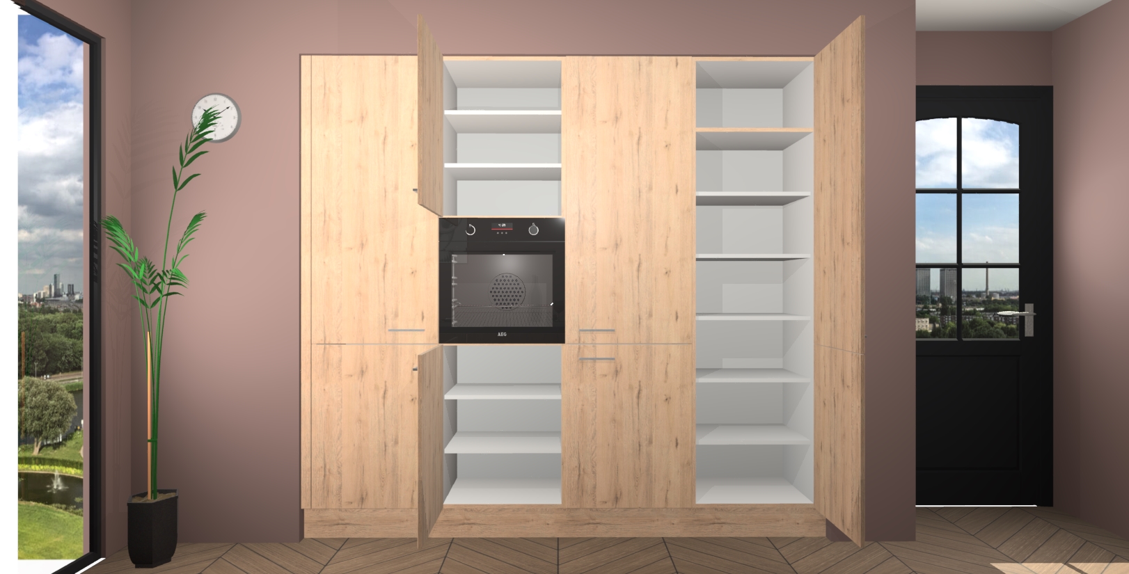 Dankzij de vele opbergruimte wordt praktisch elke centimeter van uw keuken optimaal benut, wat de ruimte een opgeruimde en sfeervolle uitstraling geeft. Bovendien zijn we er trots op dat we een snelle levering van 7 weken en een vaste lage prijs kunnen bieden, zodat u deze prachtige keuken in een mum van tijd in huis hebt!