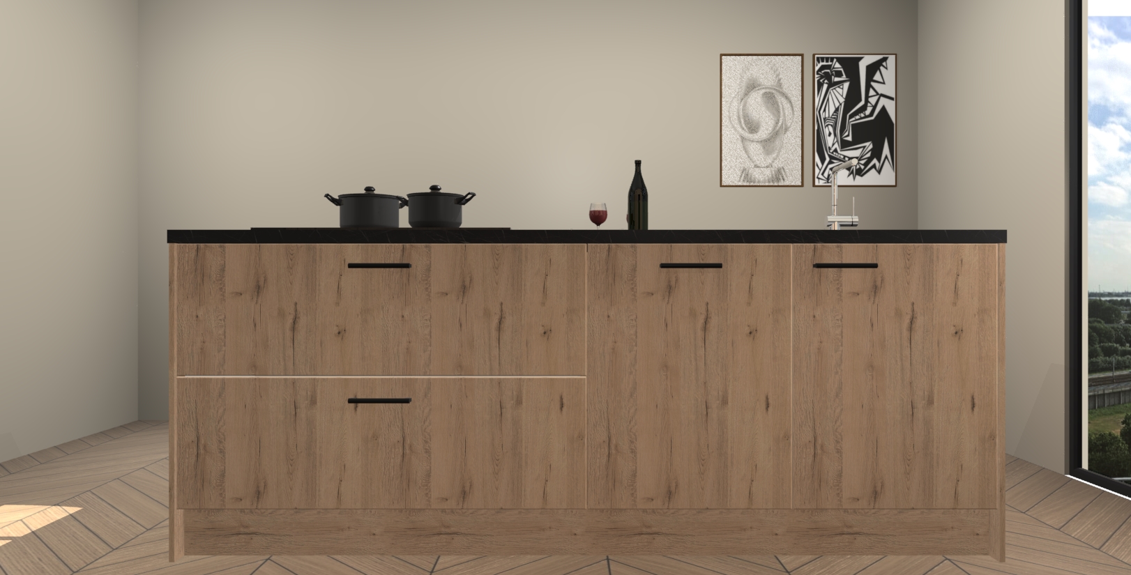 Dankzij de vele opbergruimte wordt praktisch elke centimeter van uw keuken optimaal benut, wat de ruimte een opgeruimde en sfeervolle uitstraling geeft. Bovendien zijn we er trots op dat we een snelle levering van 7 weken en een vaste lage prijs kunnen bieden, zodat u deze prachtige keuken in een mum van tijd in huis hebt!