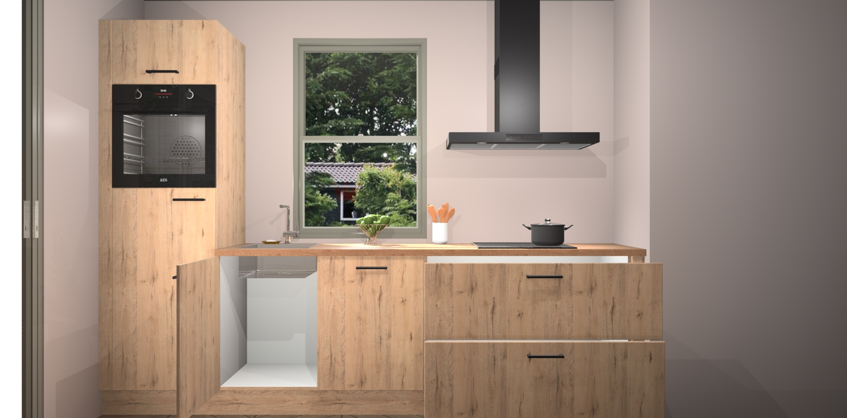 Dankzij de afwerking past de Madera Natuur keuken Toulouse naadloos in elk huis of appartement. De soft-close deuren geven je extra gemoedsrust, want ze sluiten vanzelf en slaan nooit dicht! En alsof dat nog niet genoeg is, worden deze kasten volledig gemonteerd geleverd, dus maak je geen zorgen over eventuele installatieproblemen.