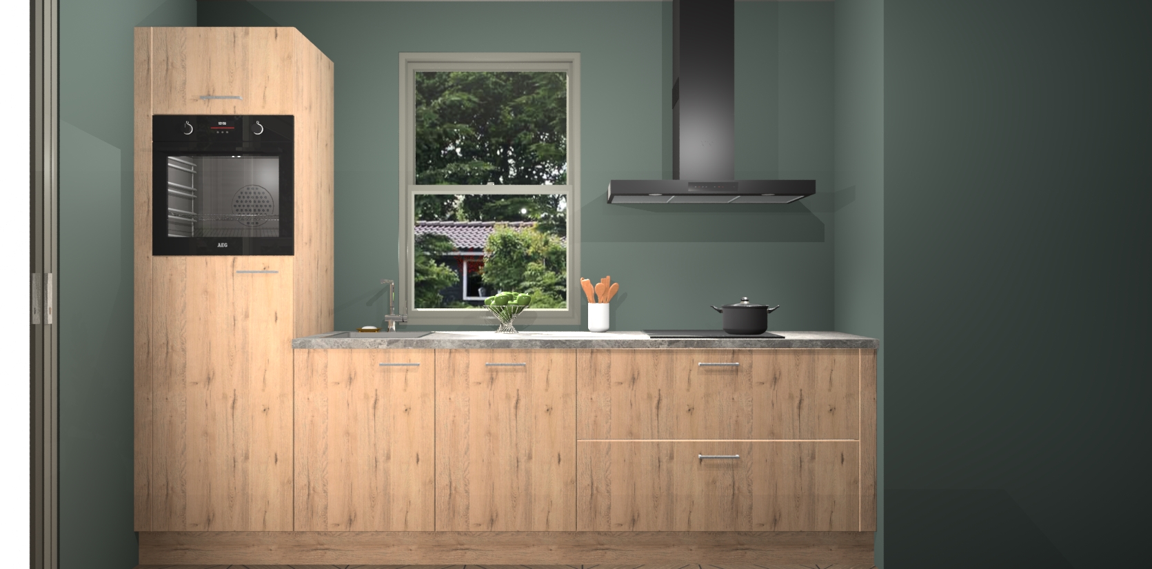 Een stijlvolle en praktische keuken als deze mag gezien worden. Dankzij de prachtige Madera Natuur afwerking wordt de keuken gemakkelijk het middelpunt van uw huis - hij ziet er geweldig uit onder allerlei lichtomstandigheden, van dag tot nacht!