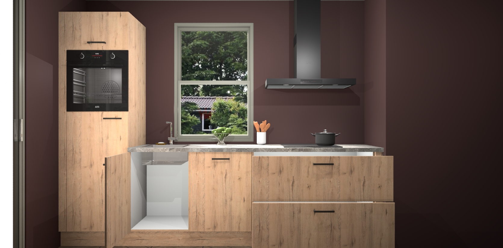 Dankzij de afwerking past de Madera Natuur keuken Toulouse naadloos in elk huis of appartement. De soft-close deuren geven je extra gemoedsrust, want ze sluiten vanzelf en slaan nooit dicht! En alsof dat nog niet genoeg is, worden deze kasten volledig gemonteerd geleverd, dus maak je geen zorgen over eventuele installatieproblemen.