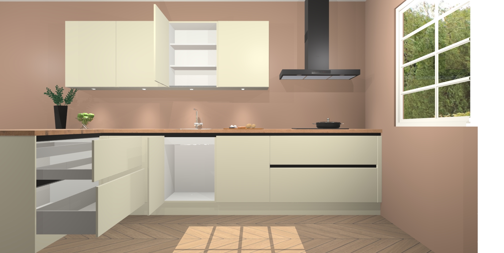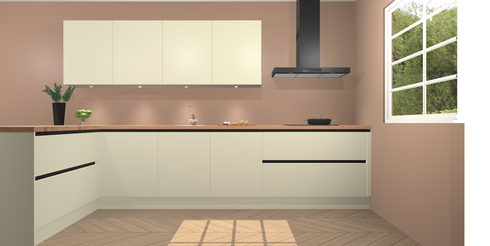 Inclusief plinten, stelpoten en werkblad