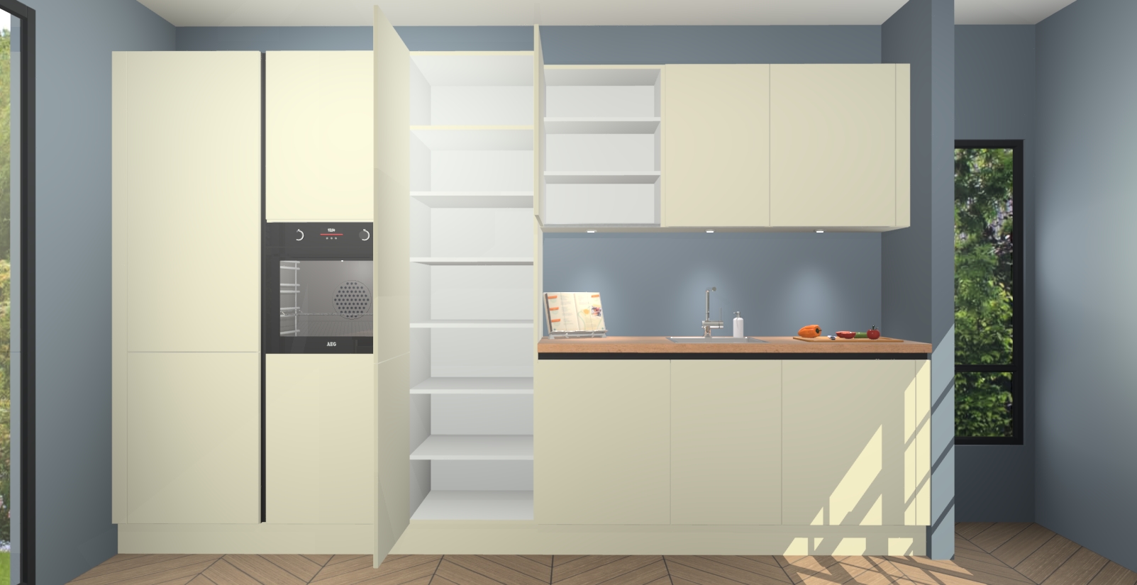 In deze box zijn alle kleuren verzameld van de deuren en werkbladen. Vraag de gratis kleurenbox aan en kijk thuis rustig verder!