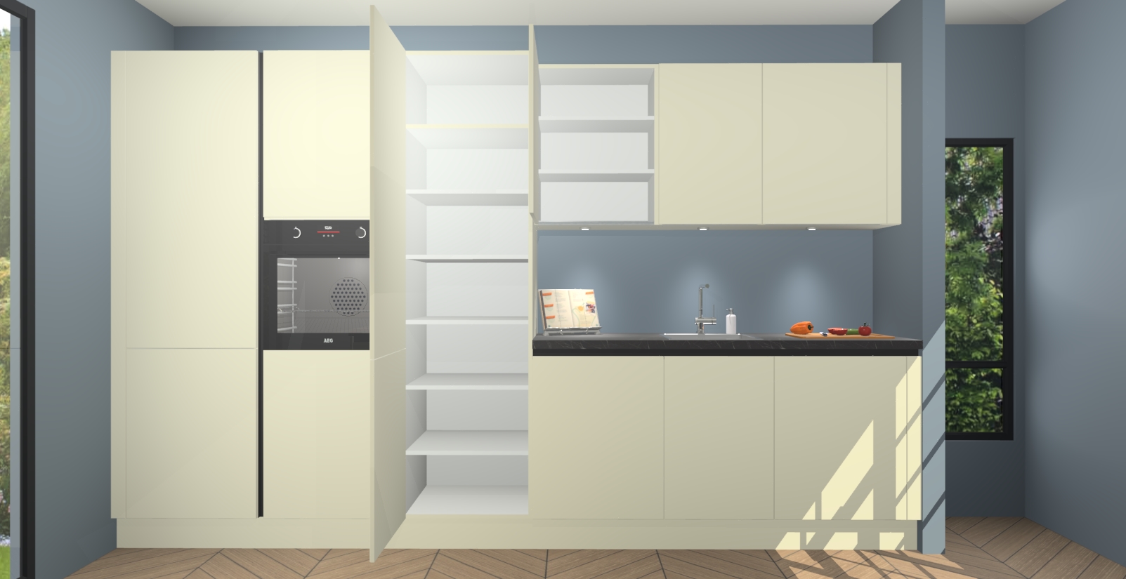 In deze box zijn alle kleuren verzameld van de deuren en werkbladen. Vraag de gratis kleurenbox aan en kijk thuis rustig verder!