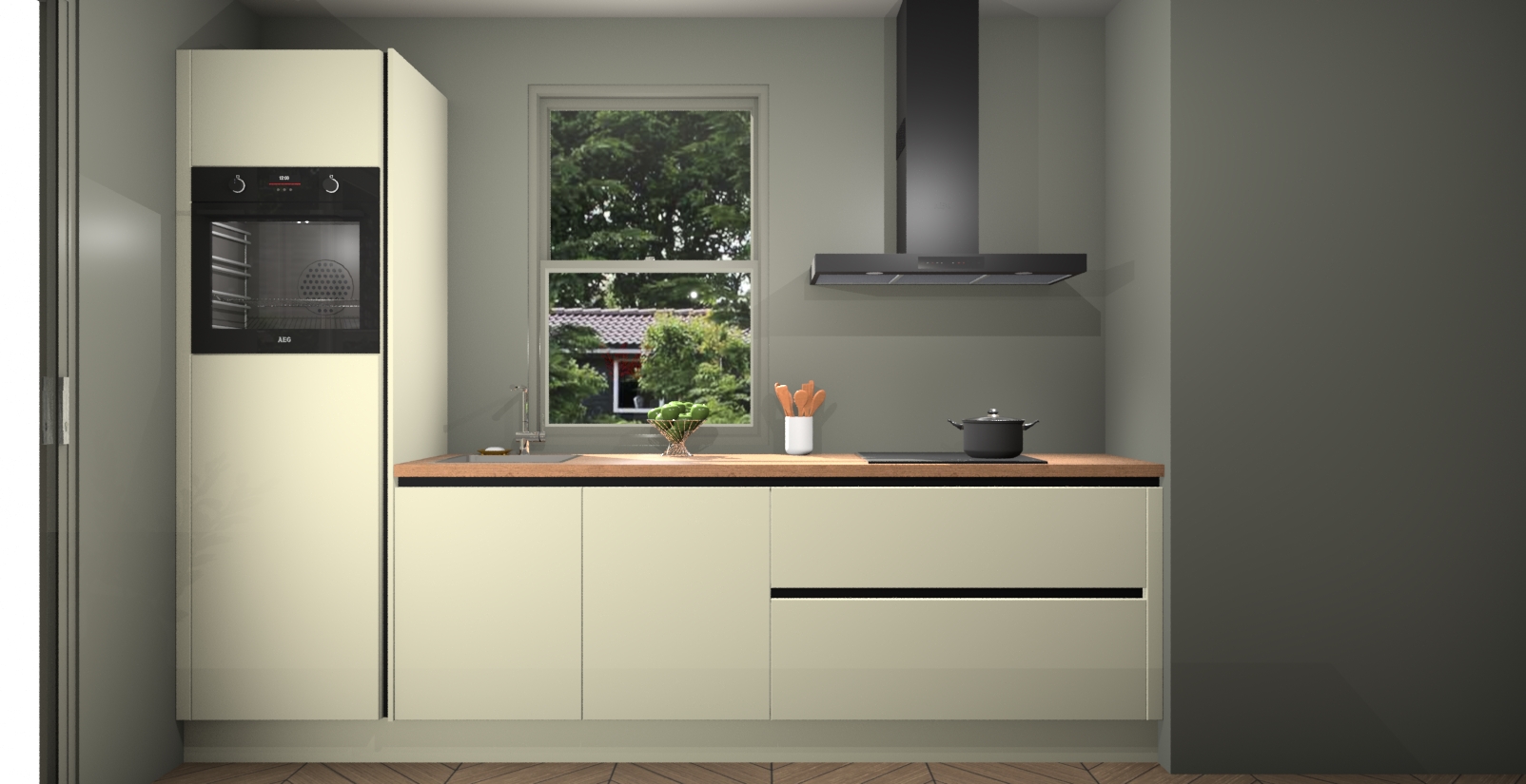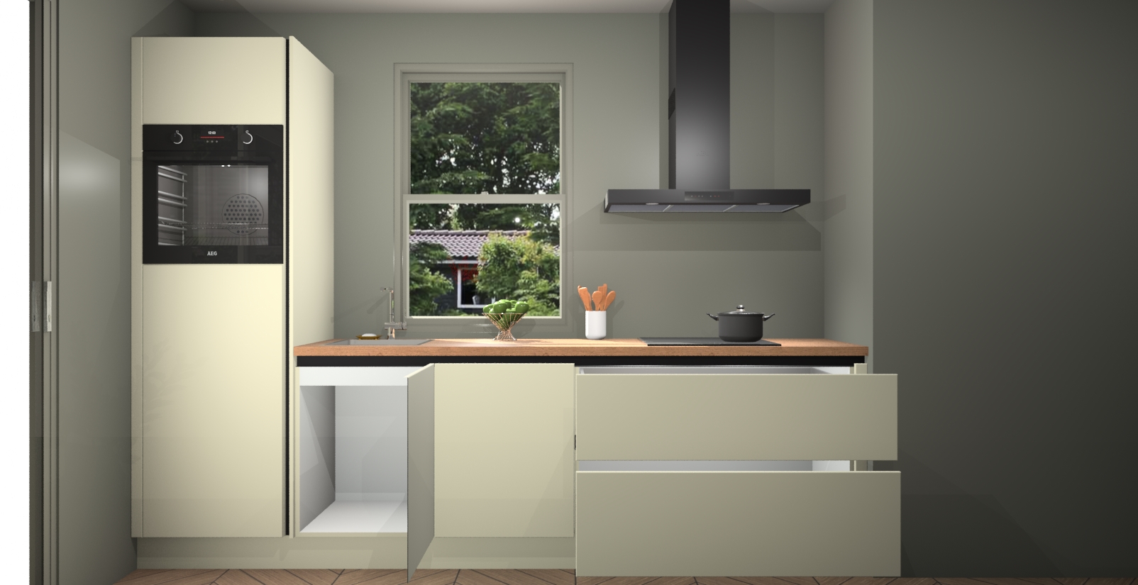 Inclusief plinten, stelpoten en werkblad