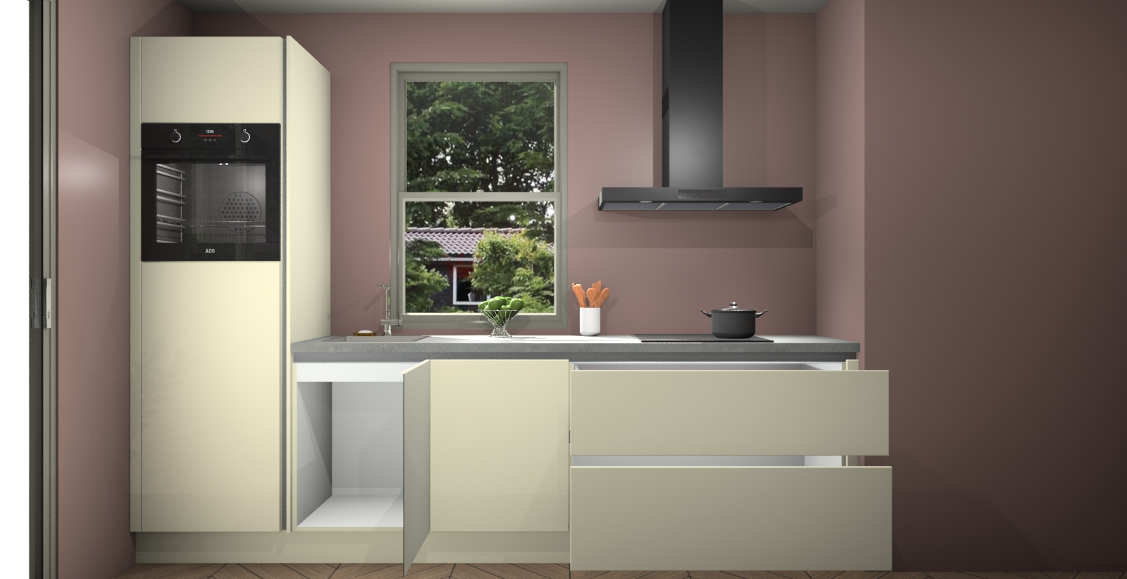 Inclusief plinten, stelpoten en werkblad