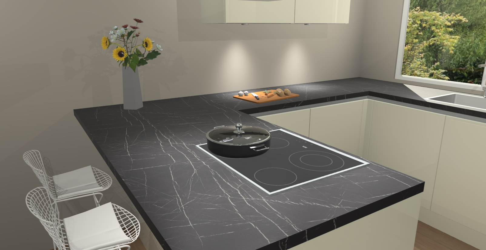 • Bij een hoekwerkblad zijn de hoeken in gevreesd en op maat gemaakt