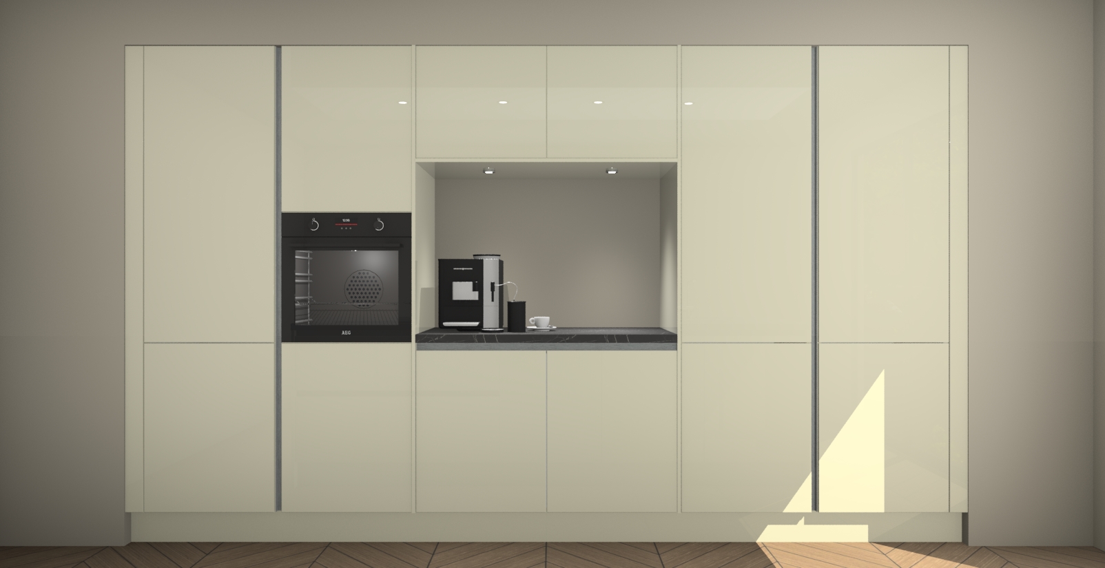 De magnolia hoogglans greeploze keuken Lodz wordt geleverd met een set van 5 ingebouwde apparaten: Een oven, inductiekookplaat, afzuigkap, vaatwasser en koelkast. Deze kunnen gemakkelijk worden opgewaardeerd naar AEG. Met de gegarandeerde lage prijs en de snelle levering van 7 weken kan u er op rekenen dat de magnolia hoogglans greeploze keuken Lodz zo snel mogelijk uw huis bereikt!