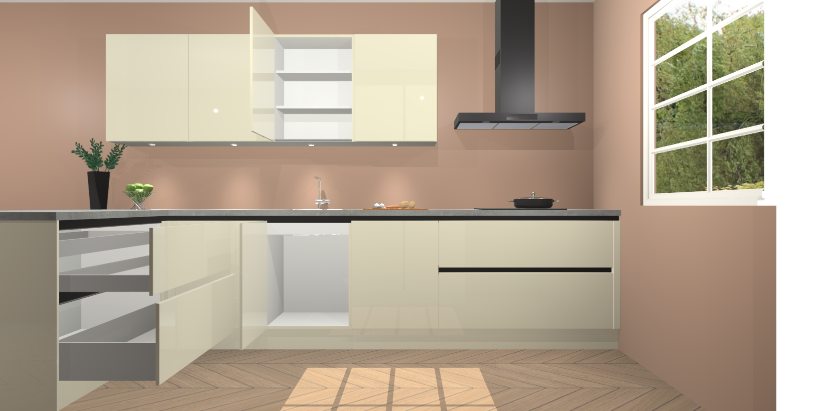 Inclusief plinten, stelpoten en werkblad