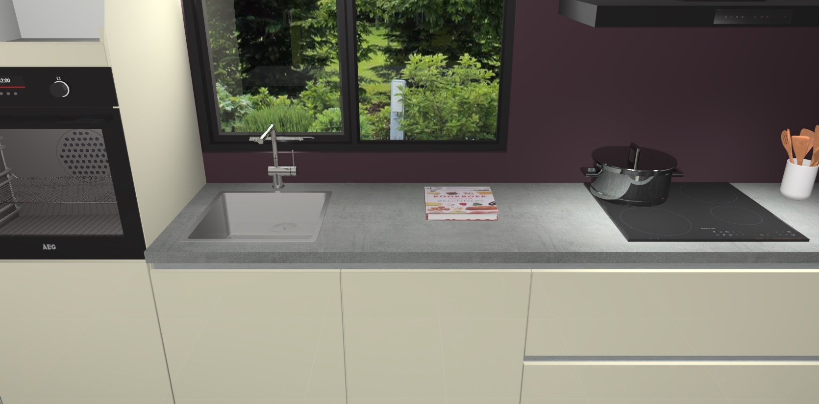 • De spoelbak is is nog niet in gevreesd, dit dient tijdens het werk gedaan te worden