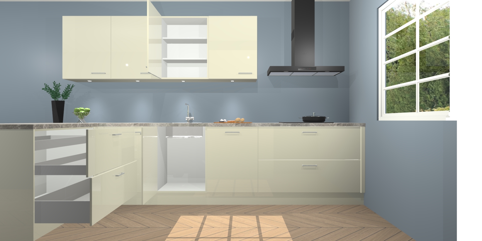 Inclusief plinten, stelpoten en werkblad