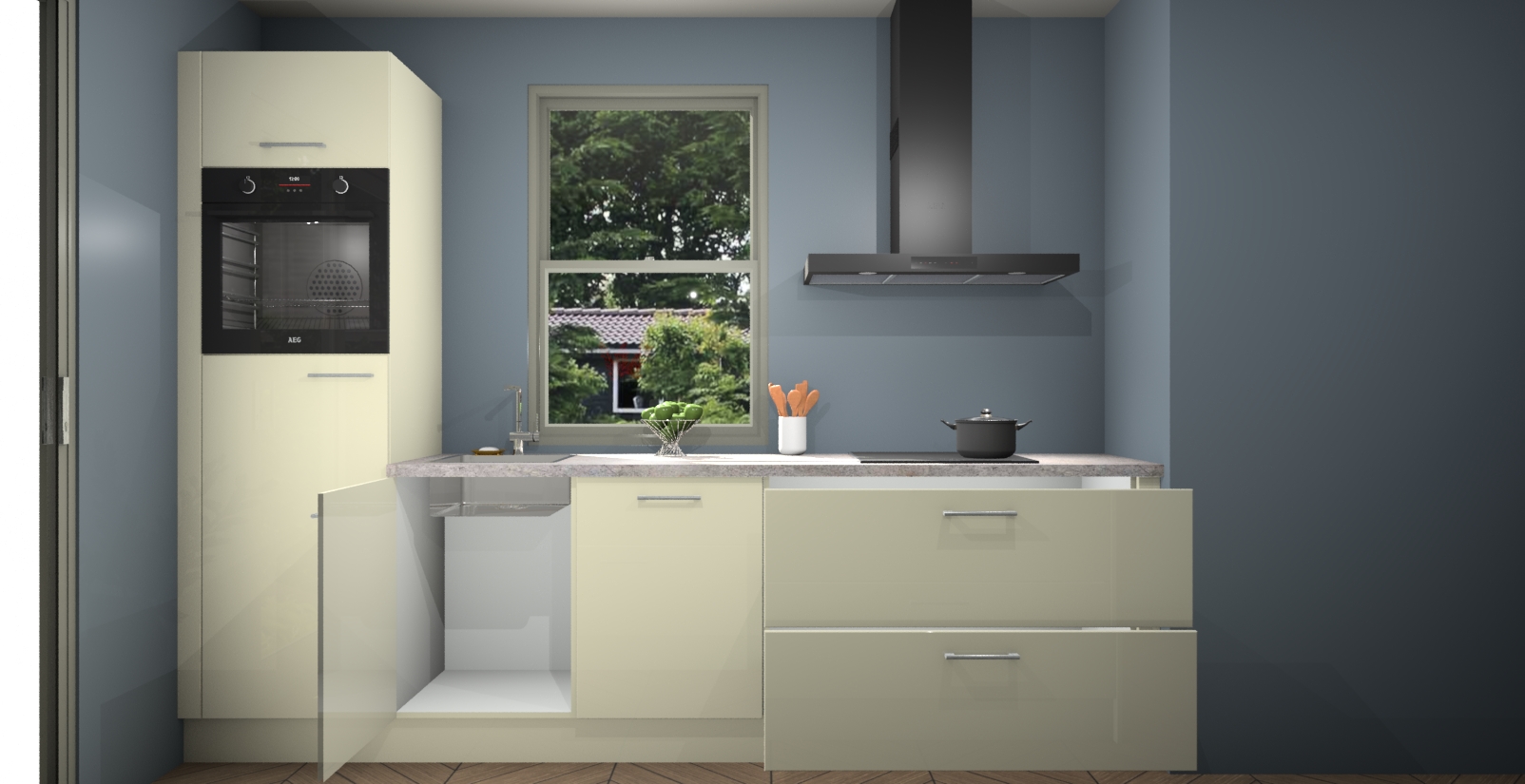 Inclusief plinten, stelpoten en werkblad