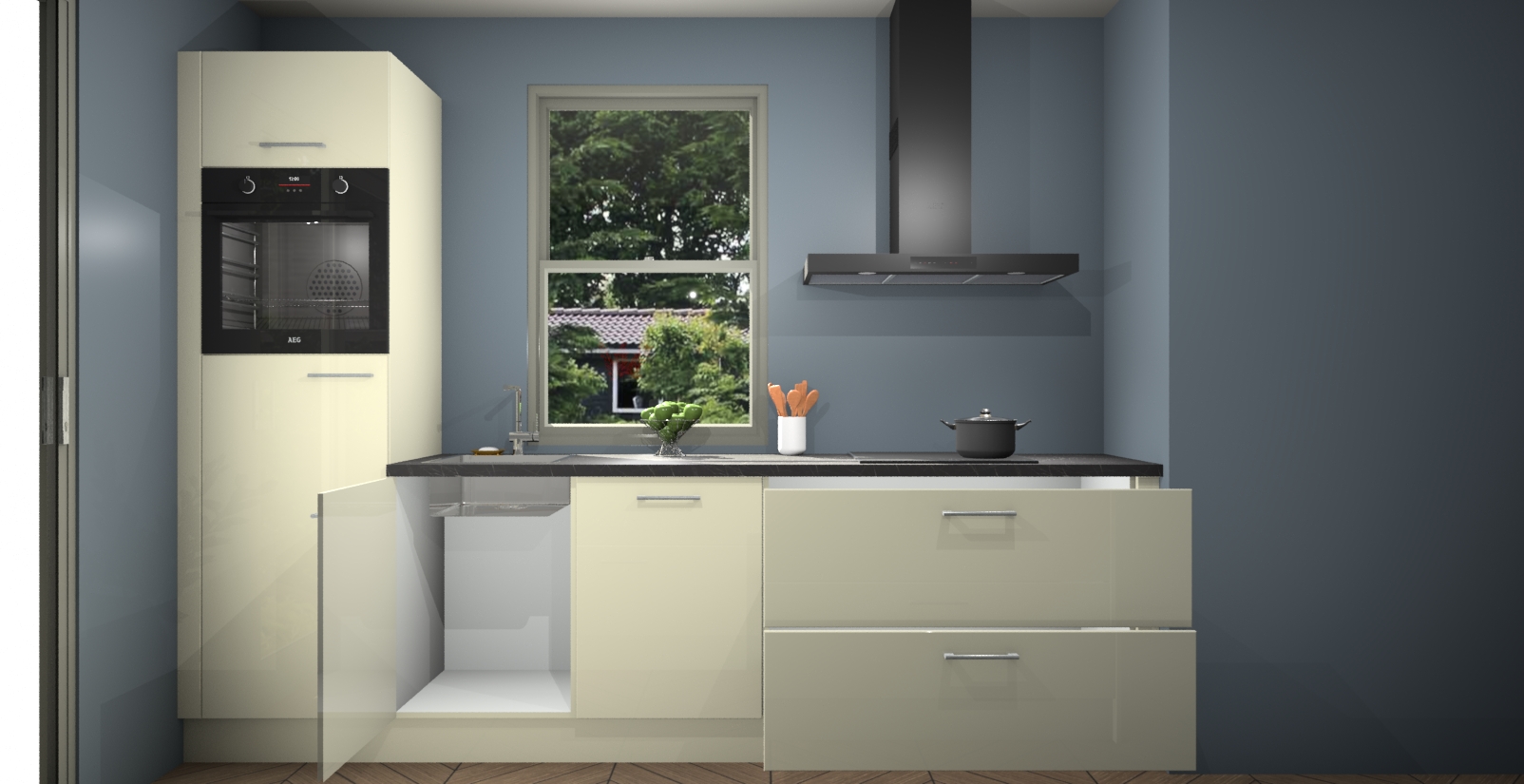 Inclusief plinten, stelpoten en werkblad