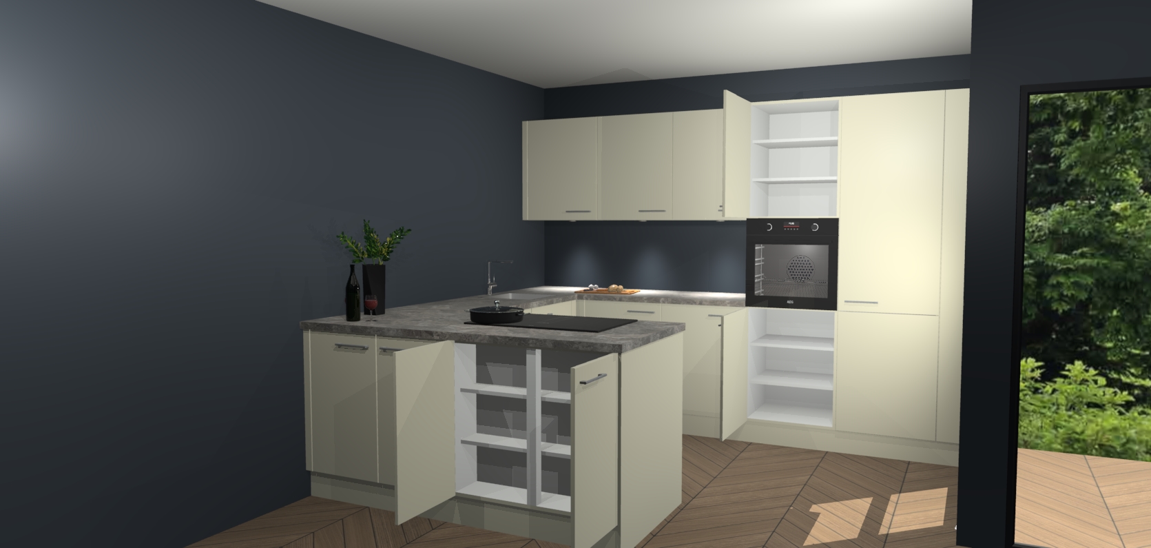 Inclusief plinten, stelpoten en werkblad