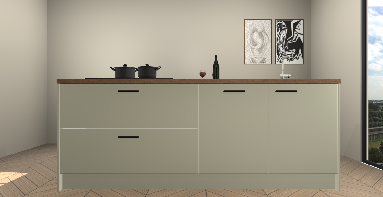 Dankzij de vele opbergruimte wordt praktisch elke centimeter van uw keuken optimaal benut, wat de ruimte een opgeruimde en sfeervolle uitstraling geeft. Bovendien zijn we er trots op dat we een snelle levering van 7 weken en een vaste lage prijs kunnen bieden, zodat u deze prachtige keuken in een mum van tijd in huis hebt!