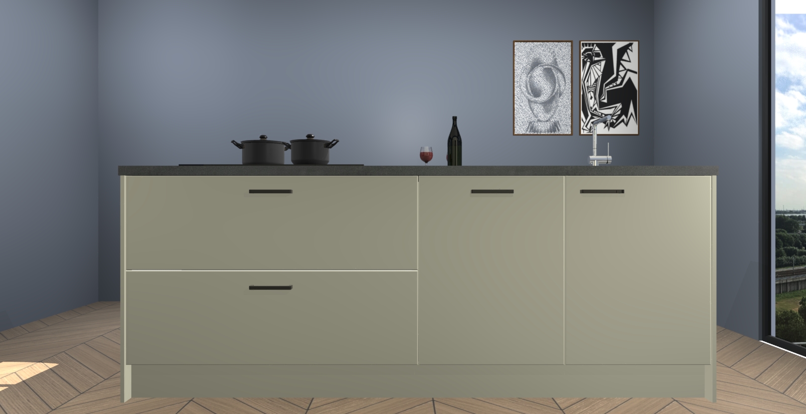Inclusief plinten, stelpoten en werkblad