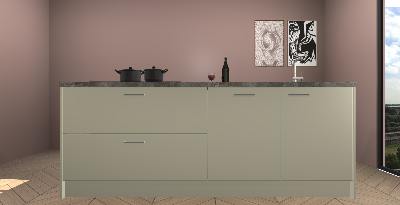 Inclusief plinten, stelpoten en werkblad
