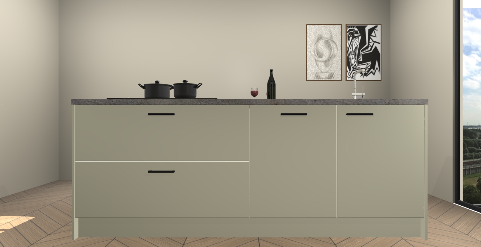 Inclusief plinten, stelpoten en werkblad