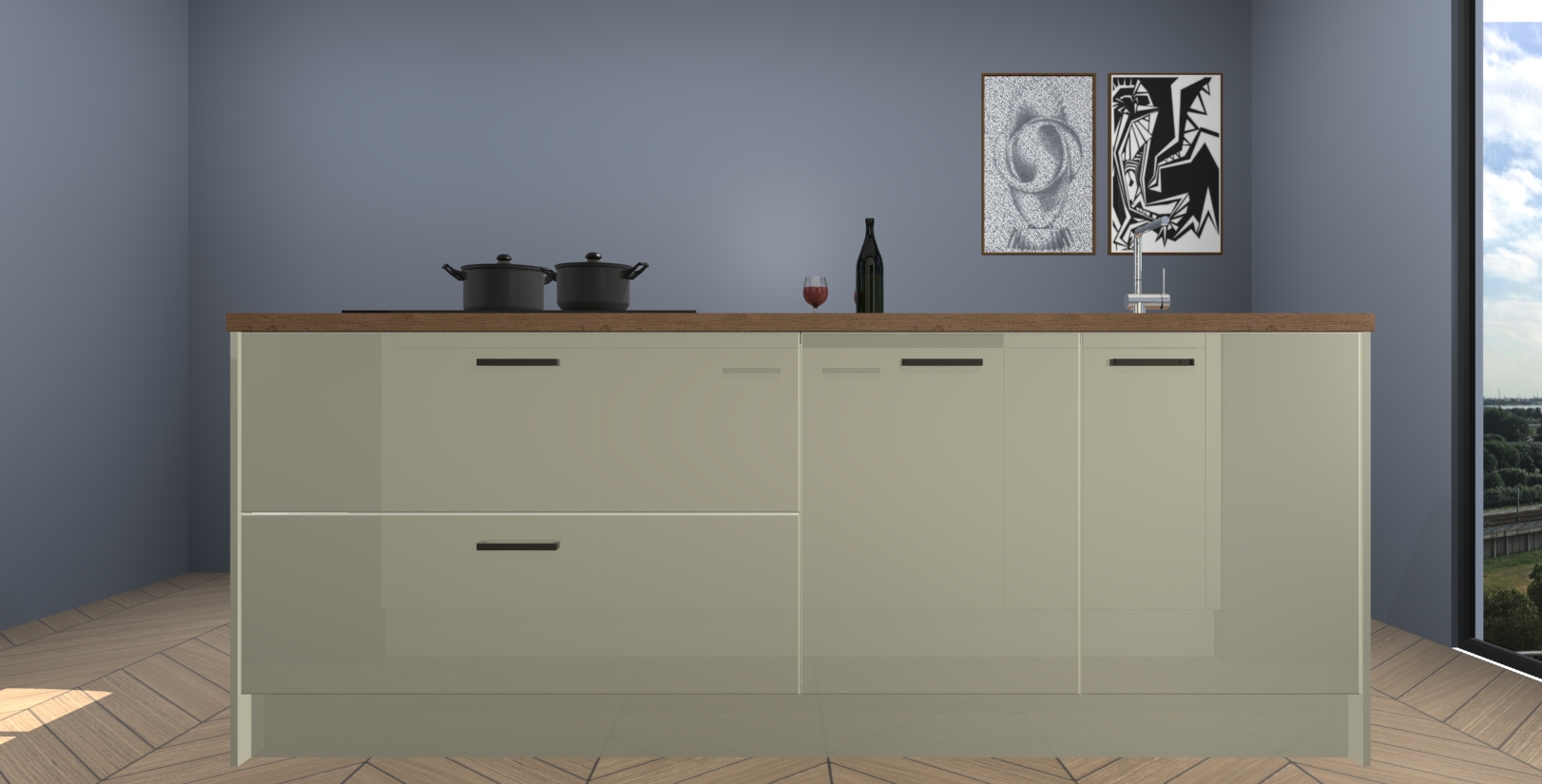 Inclusief plinten, stelpoten en werkblad