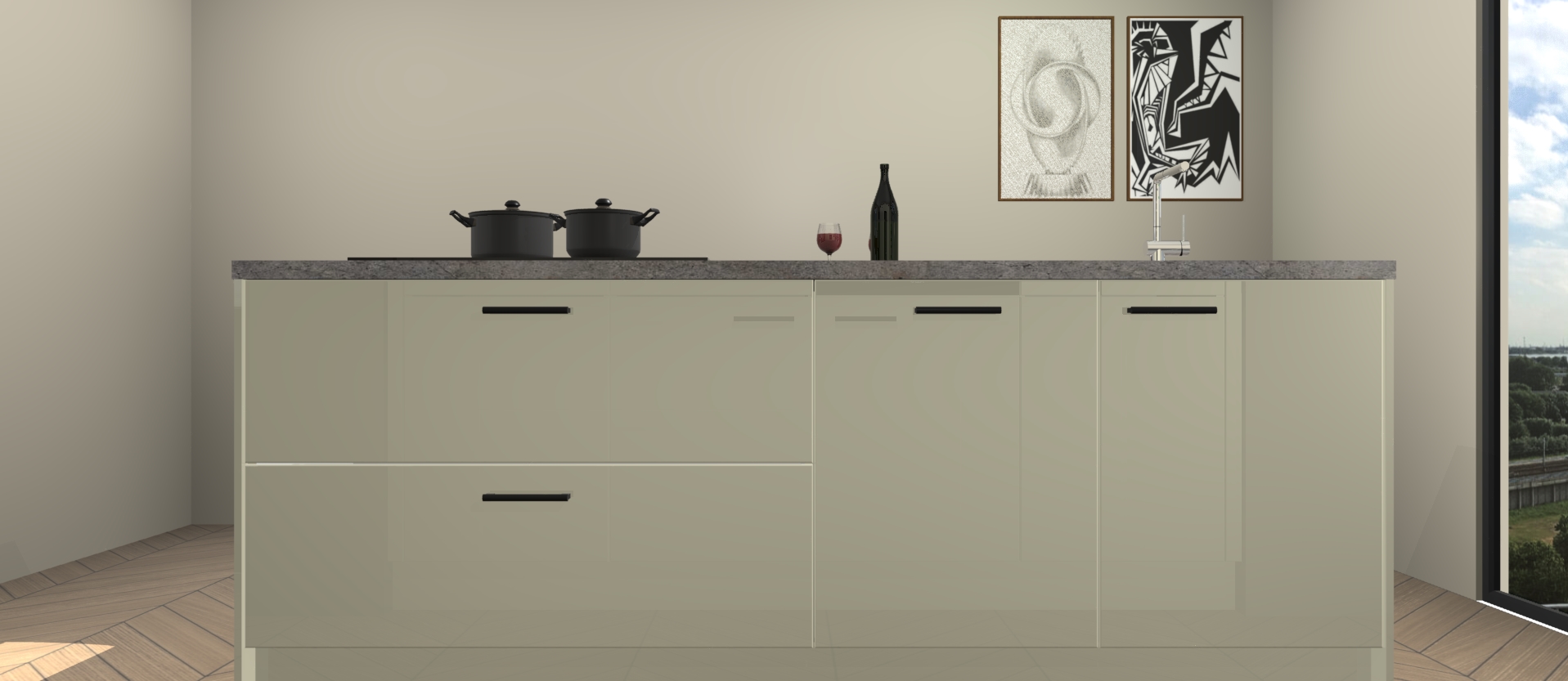 Inclusief plinten, stelpoten en werkblad