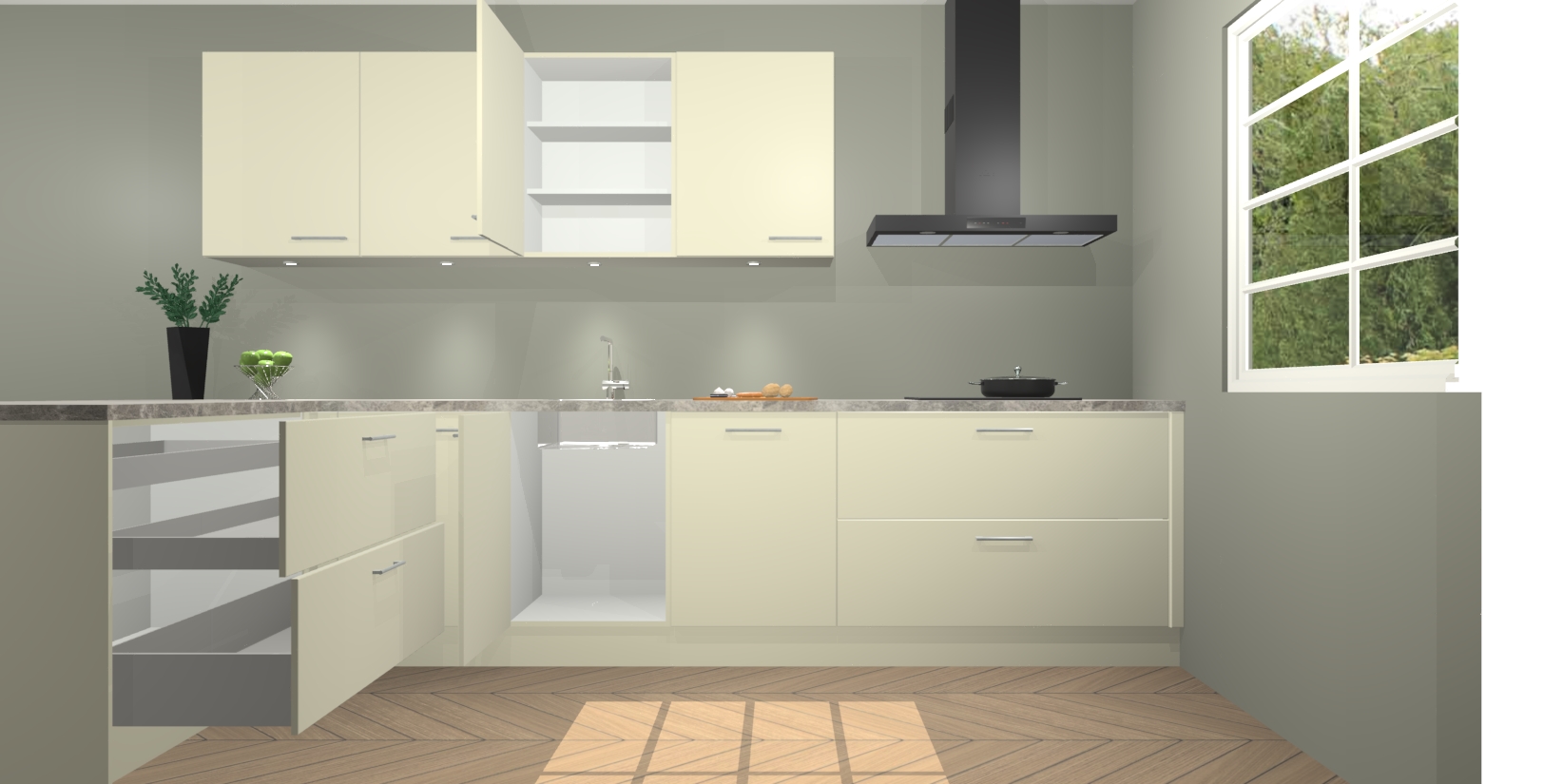 Inclusief plinten, stelpoten en werkblad